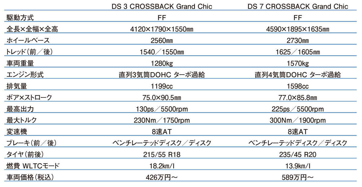 一方のテクノロジーは最先端で、DS 3 クロスバックではこのクラスの輸入車では初のEVとなるE-TENSEを発表した。ガソリンエンジンはクラス最多段になる8速ATを組み合わせる。運転支援システムは機能・作動ともに世界最高レベルで、他国のプレミアムブランドにひけを取らない。
