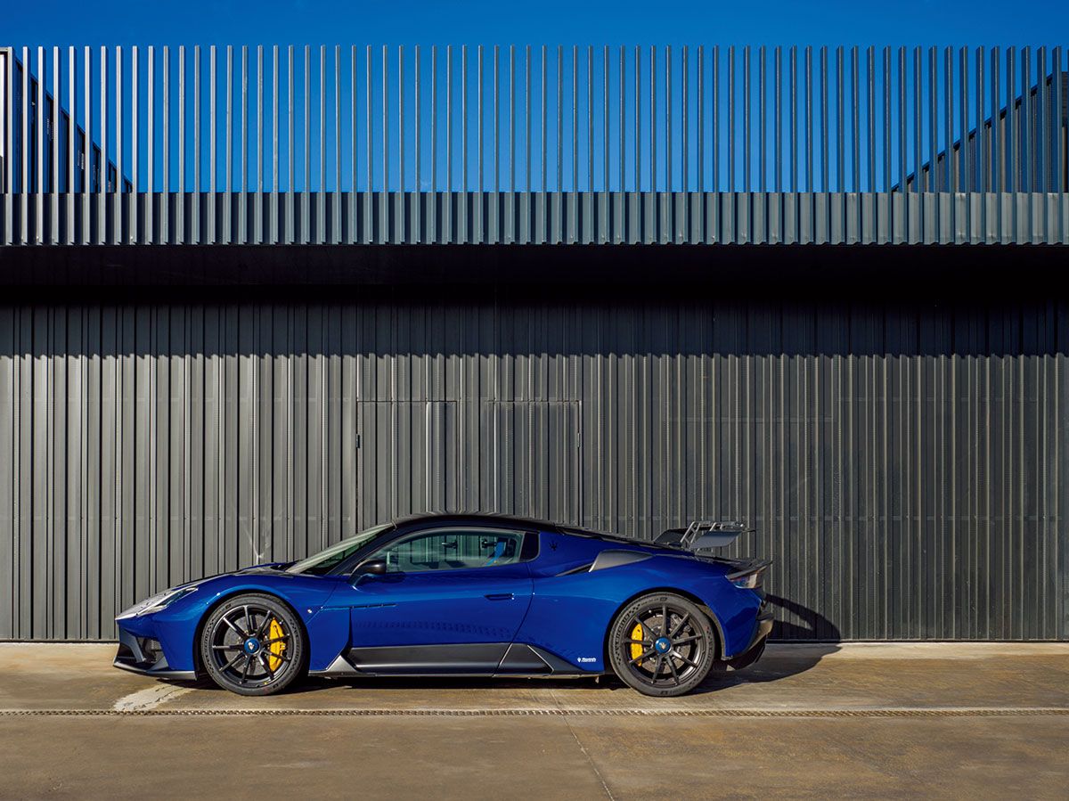 三叉の矛を3つ並べた形状の9本スポークを持つ、センターロック式20インチ鍛造ホイールのデザインもそっくりだ。4本のホイールだけで、MC20に比べて19 kg軽くなっているという。その奥に覗くブレンボ製のカーボン・セラミック・ブレーキもレーシングカーから技術を受け継いだ専用のもので、MC20のそれよりフロントが8mm、リアが20mm直径が大きくなり、厚さも2mmと6mm増しているという。その結果、時速100kmから停止までの制動距離は29mとなり、MC20の33mより4mも短縮しているというのだ。むろん、それは全体で60kg軽くなった車重のおかげもあるのだろうが。