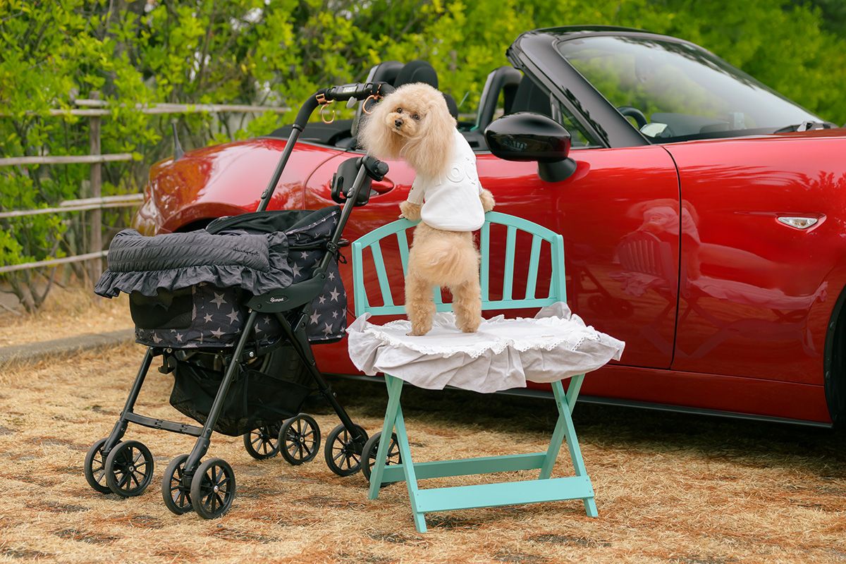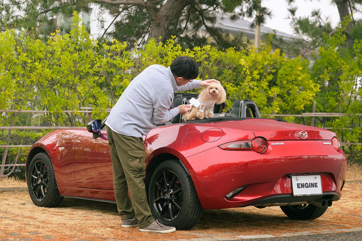 「ロードスターは初代ユーノスの頃からいつか乗りたいと思っていました。職場が遠隔地に移転することになり、クルマ通勤が可能になったので購入することにしました。趣味性が強いクルマなのであきらめていましたが、いましかない! と思って悩んでいたところ、家内が背中を押してくれました。オープンカーですが、トランクに積載可能な最小サイズのドッグ・カートを見つけ、常備しています」