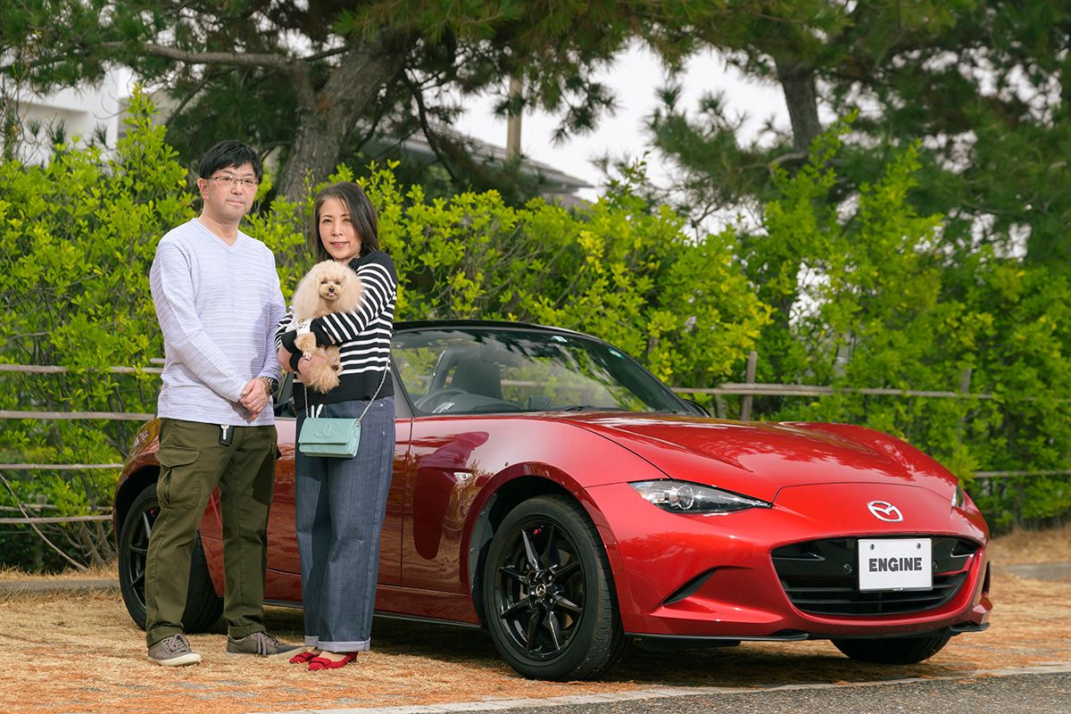 さてまず最初に紹介するのは、週末は六甲のワインディングも走るというマツダ・ロードスターに乗る陽介さん&佐和子さんとマロン(ビションフリーゼとトイプードルのミックス)。