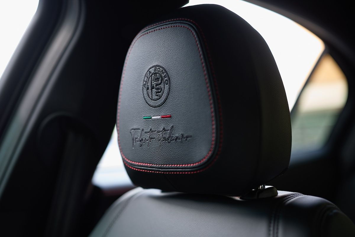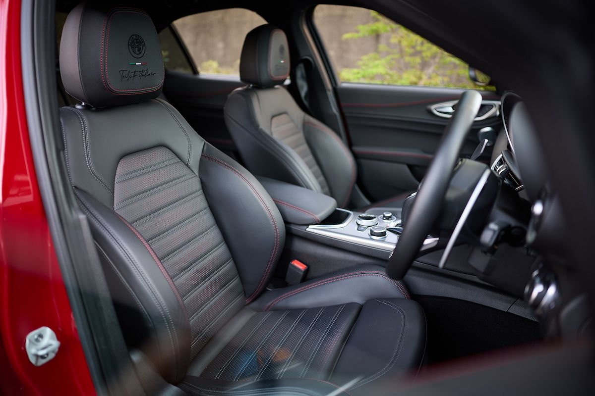 これは室内も同様で、ダッシュボードやセンターコンソール、ドアパネルなどにレーシーな赤いステッチが入るほか、ヘッドレストにはトリブート・イタリアーノのロゴも入ってメイドイン・イタリーの雰囲気を盛り上げている。