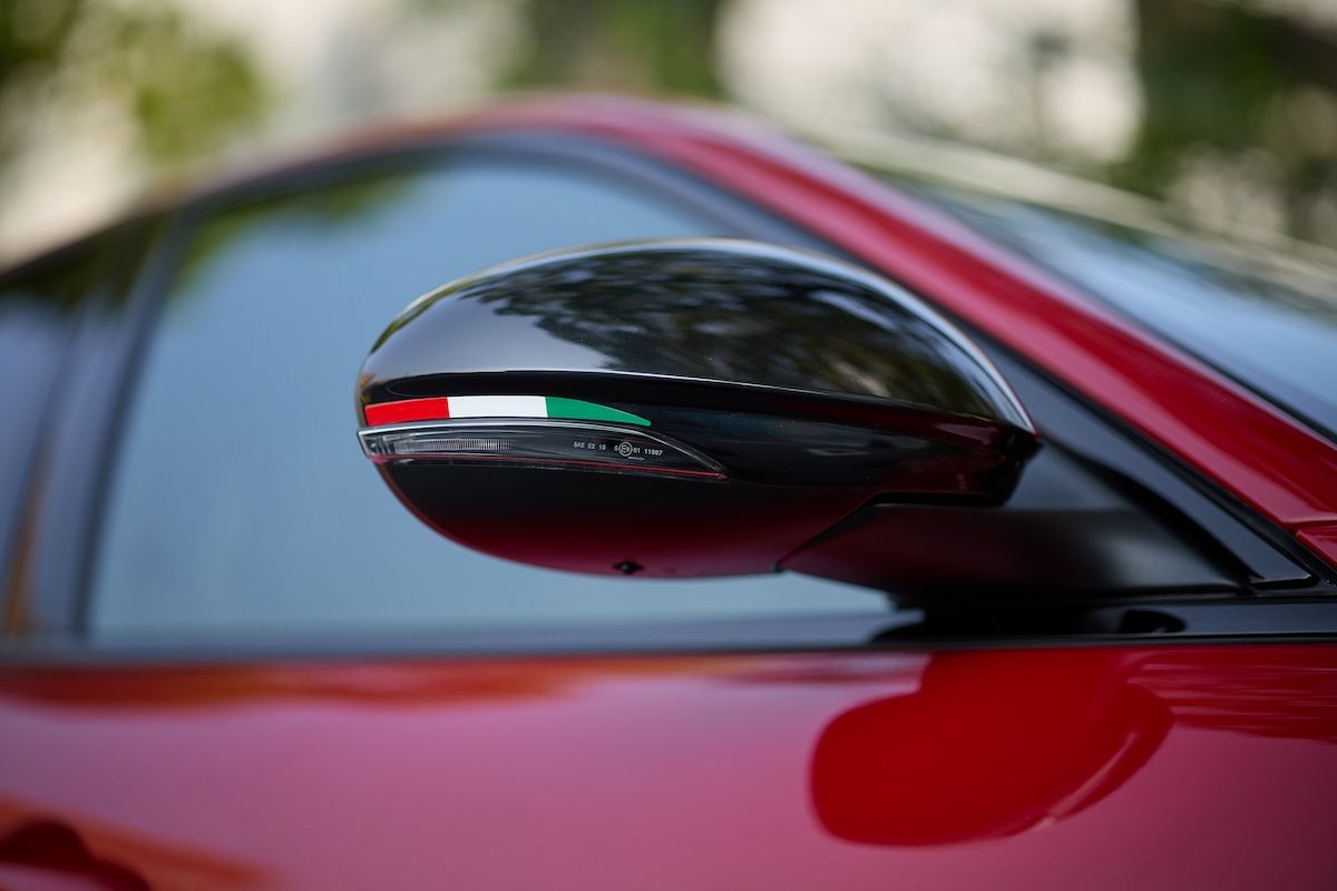 抑揚のある表情豊でエレガントなスタイリングが特徴のジュリアだが、特にトリブート・イタリアーノはブラック塗装のルーフやミラーにワンポイントのイタリア国旗のカラーを採用するなど見た目の特別感も申し分ない。