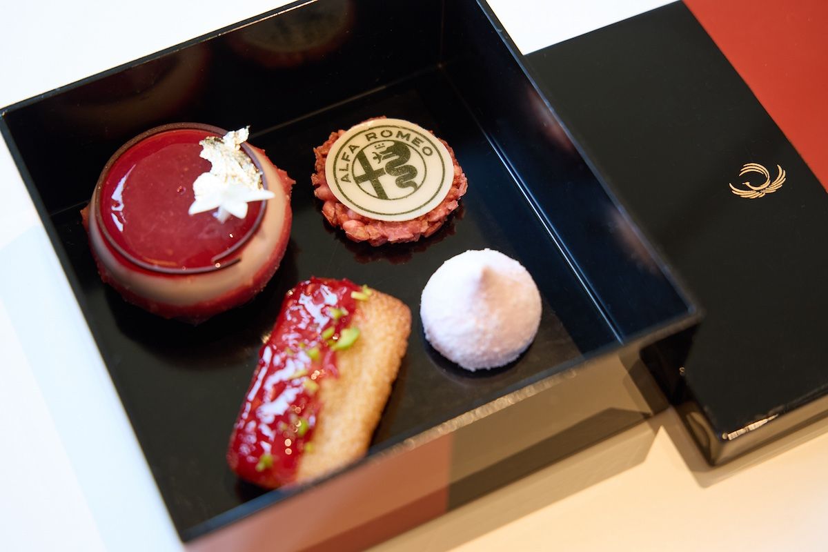 15階のラウンジでプレゼンテーションを行い、ホテルのメインのクルマ寄せから試乗がスタートするという贅沢なプログラムを楽しんだ一般参加者の方にも話を聞いたので、少し紹介しよう。ちなみにラウンジでは参加者のためにアルファ ロメオのロゴをあしらった特別なスイーツも用意されていた。