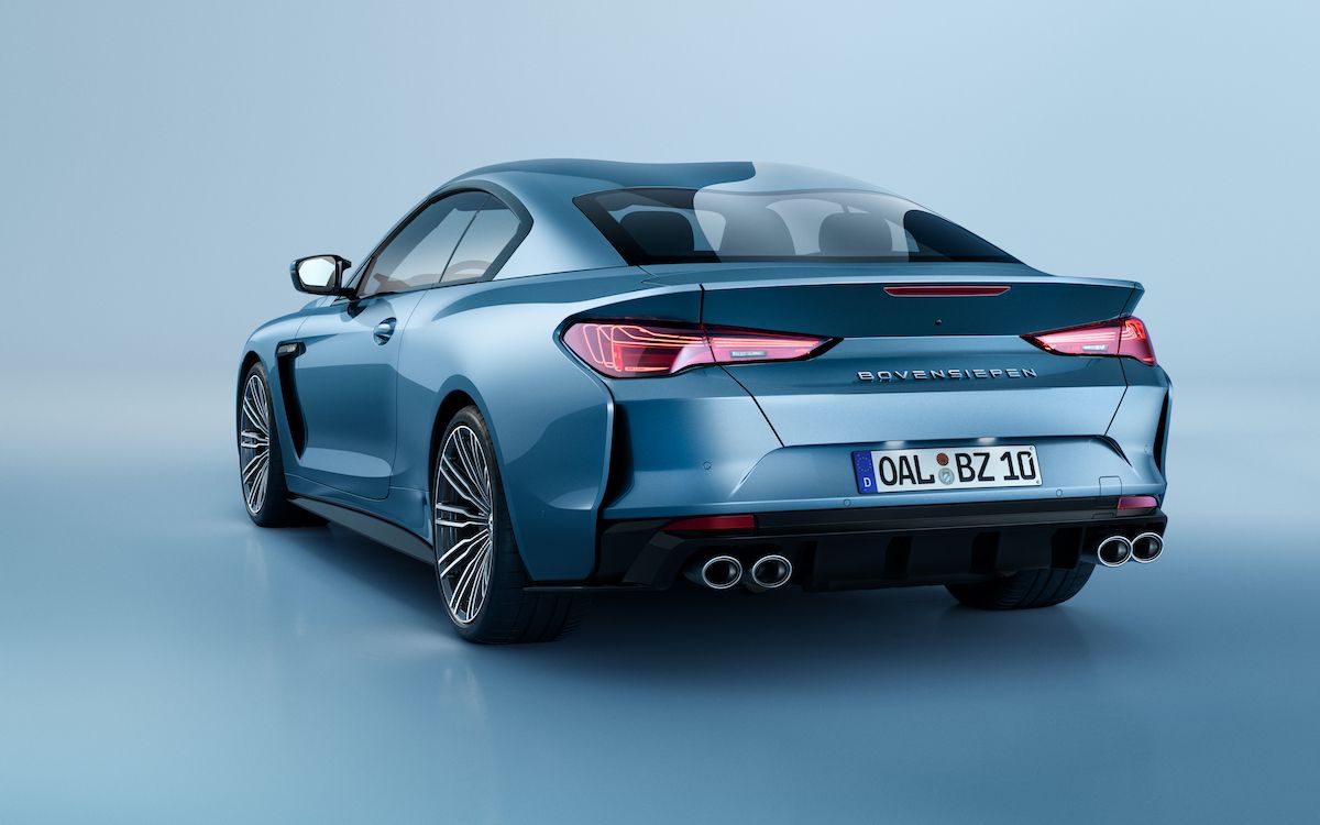 テールライトは、立体的な発光部を見るにM4のそれを流用しているようだが、周辺のデザインは大幅に改修。後方へ大きく突き出したトランク・リッドのダック・テール形状はフェンダー後端と連なり、そのエッジがテールライトの外郭からバンパーの横まで縦フィンのように続く。ナンバー・プレートが低い位置に設置され、左右ライトの間はボーフェンジーペンのロゴが陣取った。