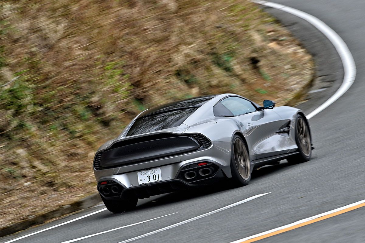 ウェット/GT/スポーツ/スポーツ+/インディヴィデュアルとあるモードのうち、デフォルトのGTで走り出す。ところが普段よく通る赤坂御所横の曲がりくねる坂道を過ぎる頃には、値札のことが頭から薄れてきた。身のこなしは鋭いが、とにかく操舵に対する反応が自然だ。車体は大きく鼻先はドーンと長く、前輪と着座位置の距離はこれまでのV12搭載アストンよりさらに遠くなったのに、車体は強固でフロント・タイヤの接地感もしっかりあるから、サイズがより小さく感じる。こんな悪条件下でも、狭い車線内を気負わず自在に操ることができる。舗装の継ぎ目を越えた時の挙動はかなり硬いが、サーキット走行でもしたのかエアが指定値よりかなり高めで、調整後はすぐしなやかさが戻った。