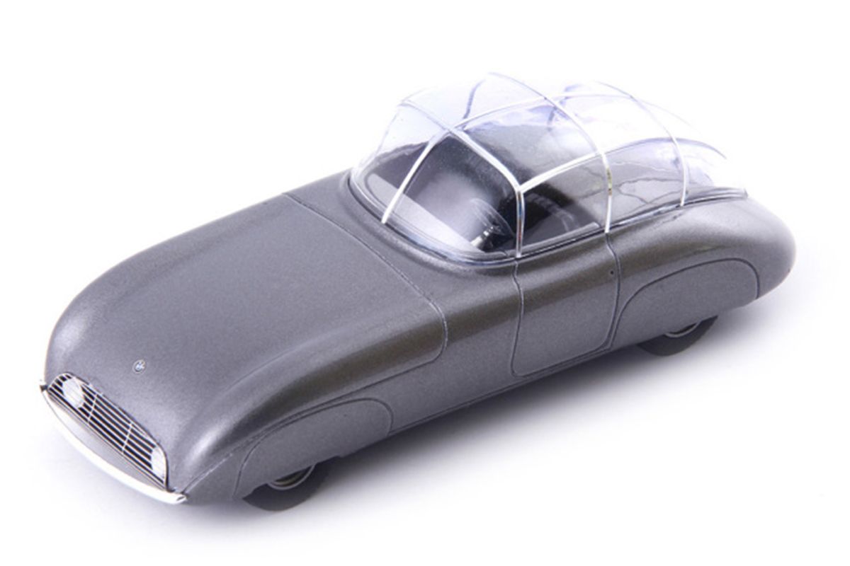 設計と製造を担当したゲオルク・ハフナゲルを中心とするクルーが空気力学を徹底的に追求し、このレトロフューチャーなデザインをつくりあげた。車体は突起物を極力排除したアルミニウム製、車輪は独立させずにボディの中や下にレイアウト、ステアリングアングルが小さかったこともあり、車幅はかなり広め。実際にロードレースでは2勝して面目を保った。その後、公道を走行可能な2シーターに改造されたモデルが1950年にライプツィヒ見本市で展示されたという記録が残っている。BMW S1 1949 シルバー 1/43 ¥28,600
