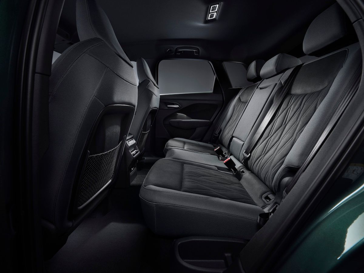 内装には、成長の早い木材や再生素材など、御多分に洩れず持続可能性に配慮した素材を設定。後席はスライド可能で、ICE車の荷室容量は通常488リットル、スライド前進時575リットル、最大1386リットルと、上位機種であるQ5のPHEVモデルを凌ぐほどだ。