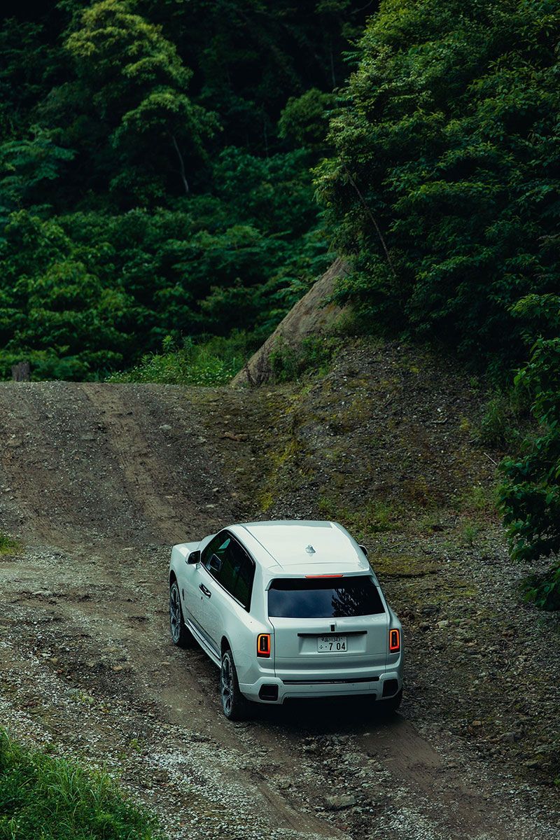 午前中にTHE MAGARIGAWA CLUBに到着し、ほかのジャーナリストたちとブランチを済ませた後、いくつかの班に分けられた。さっそくサーキットに向かうのかと思いきや、さにあらず。インストラクターが運転するクルマに乗せられた私は、サーキットからほど近い、給油ステーションのあるエリアに連れていかれた。そこには別のインストラクターが、ロールス・ロイスのSUV、ブラック・バッジ・カリナン・シリーズIIと共に待機していた。森に向かった未舗装の急斜面を、カリナンで上がって下がってくるというプログラムだったのだ。