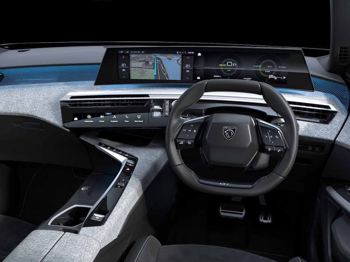 先代の3008に対し、顔つきとともに大きく変わったのはインテリアの印象だろう。従来はセンターの液晶パネルとドライバー正面の液晶メーター・ユニットは分離していたが、新型は21インチのパノラミック・スクリーンを採用することで両者を一体化している。