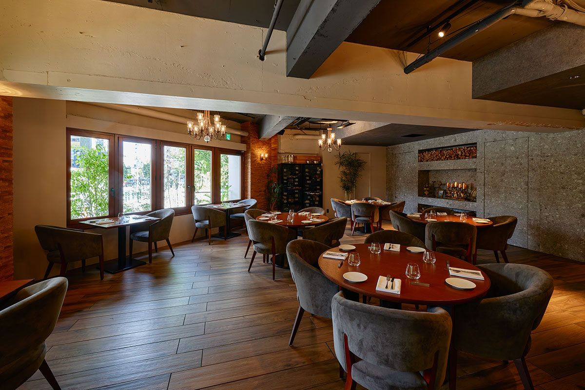 店内は気軽に立ち寄れる「ラウンジエリア」と、会食や記念日にも適した「メゾンエリア」に分かれ、冬には暖炉の炎が特別感を醸し出す。外苑西通りにはパーキングメーターやコインパーキングが点在し、愛車を駐めやすい点も嬉しい。