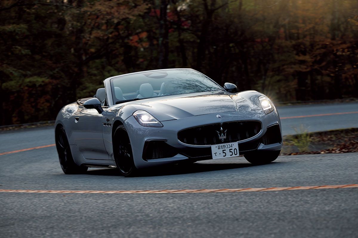 オープンカーの非日常を優雅なデザインと圧倒的な走りで楽しめるのがマセラティのグランカブリオ。ルーフを下ろしてもV6ターボの加速が楽しい。(生方聡)