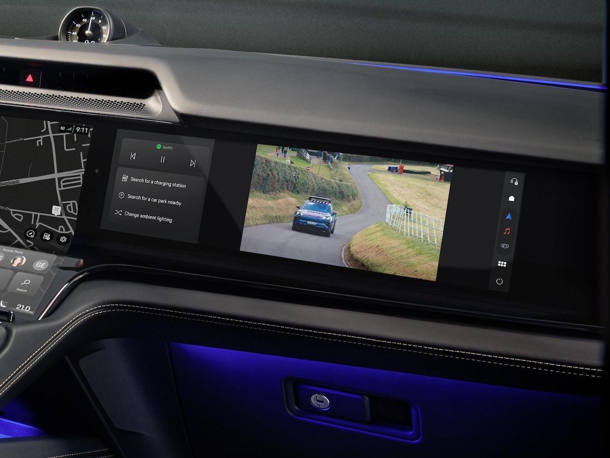 AIによる音声アシストも備えるカイエン・エレクトリック。快適装備の音声操作や目的地入力なども、自然な話し言葉で可能な上、複雑な指示も理解し、起動用のキーワードを繰り返さなくても、必要ならば自発的に補足の質問を返してくる。