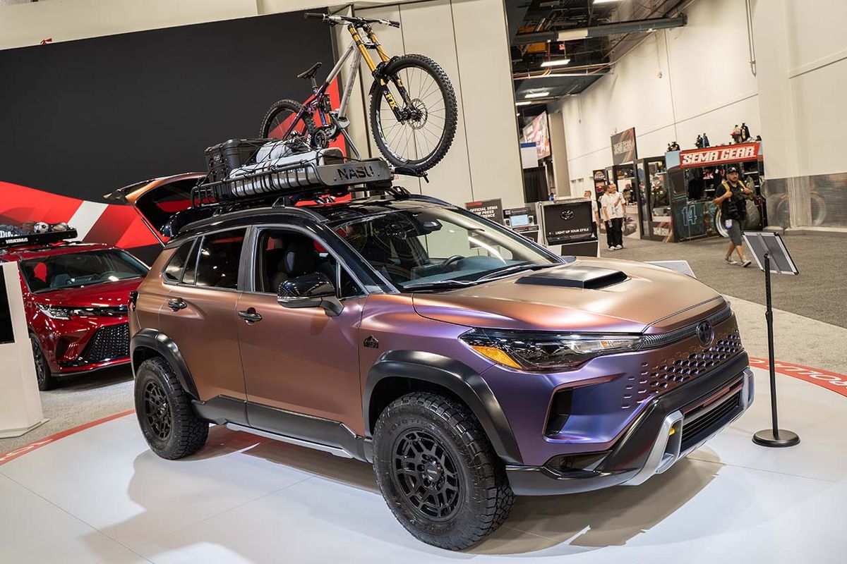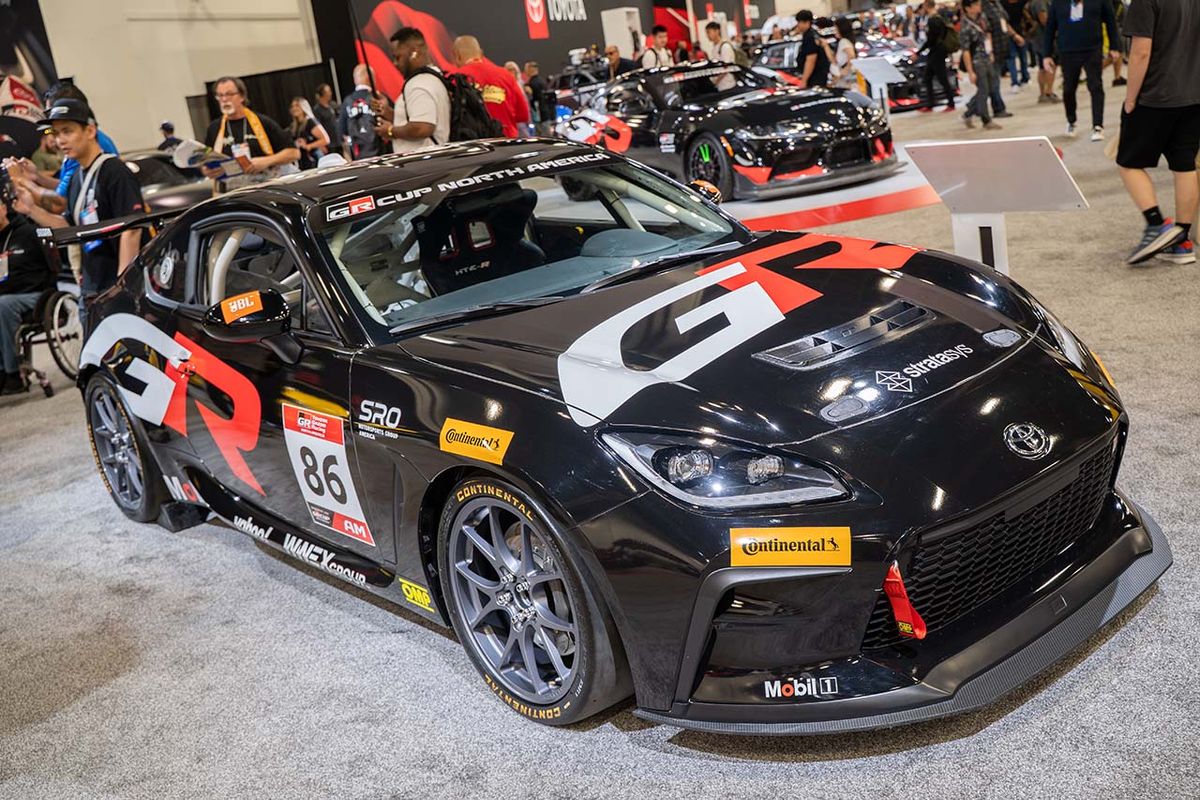GR86のカップカーや「TCアメリカ」シリーズ用のGRカローラといったモータースポーツ系はもちろん、コロナ禍を経て改めて注目されているアウトドア需要に向けて、SUVやピックアップ・トラックのカスタム車両も多く展示する「パフォーマンスとアウトドアの二刀流」がコンセプトだ。