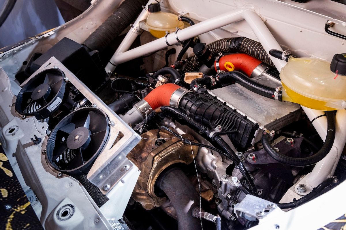 1.8リッター直4ターボはSやR用の300ps仕様をベースに制御のマッピングを変更しターボの過給圧を上げることで330psへと出力アップ。また、ロールケージなどの装備を追加しているにもかかわらず、内装から快適装備を取り除き、サイドウインドウなどをアクリル製に変更するなどの軽量化が図られ、車両重量は市販モデルよりも軽い1080kgしかない。