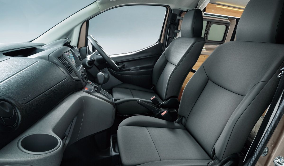 「NV200バネット MYROOM」は、1人でゆったり、2人でぴったりくつろげる、ナチュラルで洗練された空間が特徴の純正カスタムカーだ。コンパクトなサイズで扱いやすいボディサイズでありながら、「キャラバン MYROOM」と同じ2 in 1シートを2列目に採用し、過ごしやすい空間を実現している。
