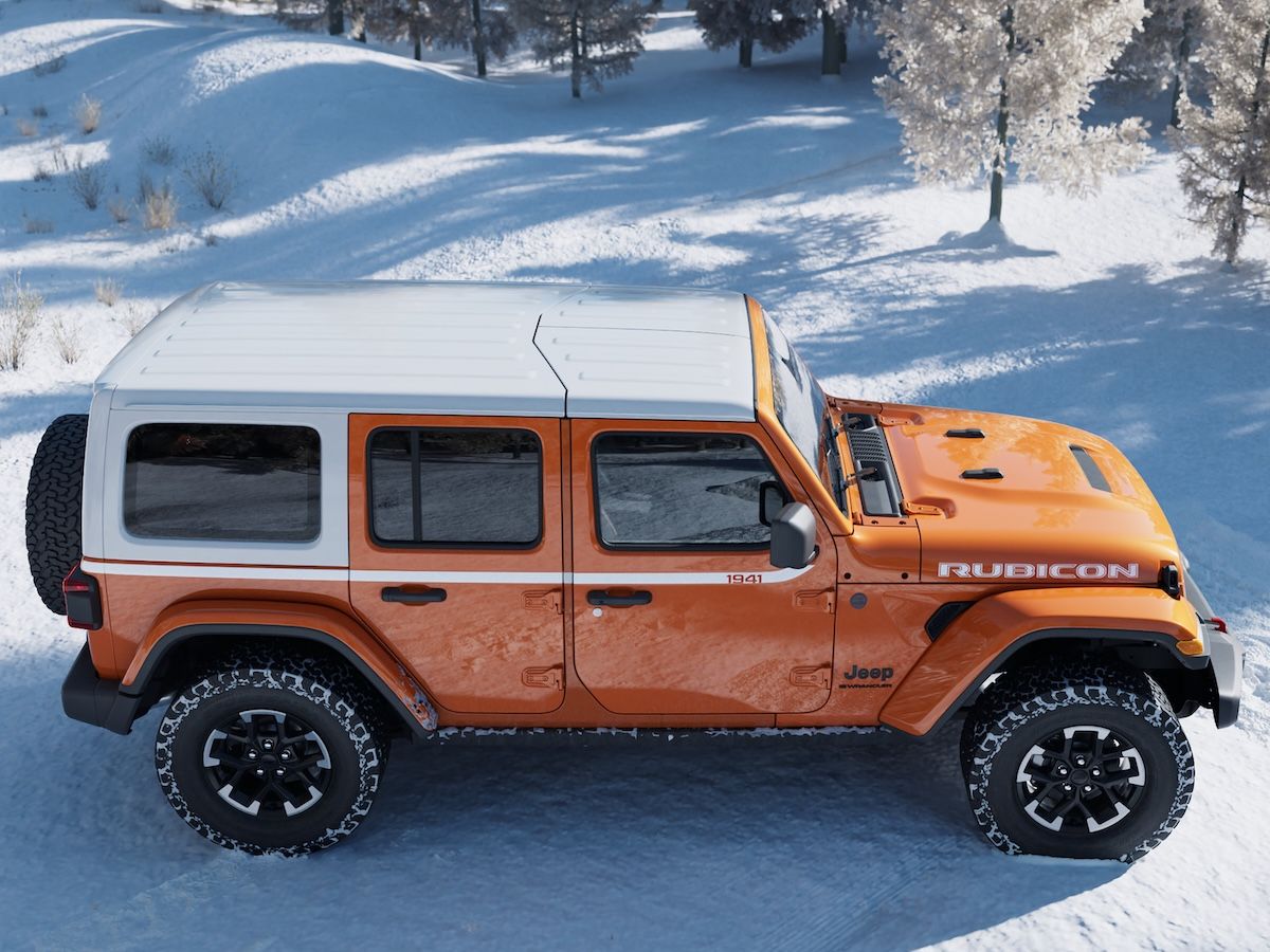 さらに、サイド・ストライプや、“ルビコン”のフード・デカールもブライト・ホワイトが。フェンダーはボディ同色だ。オプションでスライド開閉式ファブリック・ルーフのスカイ・ワンタッチ・パワートップを選んだ場合、ブライト・ホワイトのアクセントが入る。