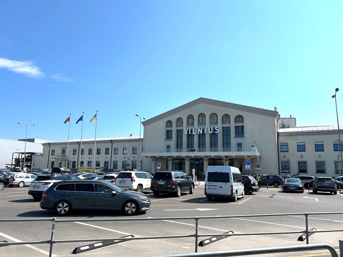 リトアニアの首都、ヴィルニュス空港に到着した直後に撮影した1枚。到着出口は、シトロエン・ピカソなどのタクシーの待機場と、バス乗り場のみという長閑さだ。真新しいポルシェ・タイカン・クロスツーリズモの後ろが、いかにもクラシカルな旧空港施設。その左奥には建設中のモダンな新施設も見える。