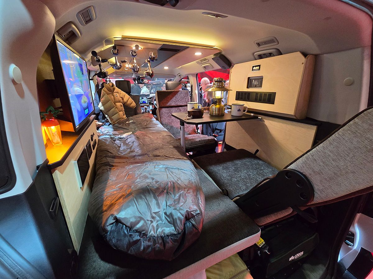 デリカD:5 ACTIVE CAMPER(アクティブキャンパー)の内装は、キャンピングカーメーカー「ダイレクトカーズ」とアウトドアブランドの「LOGOS(ロゴス)」がコラボレーションしたものを採用している。