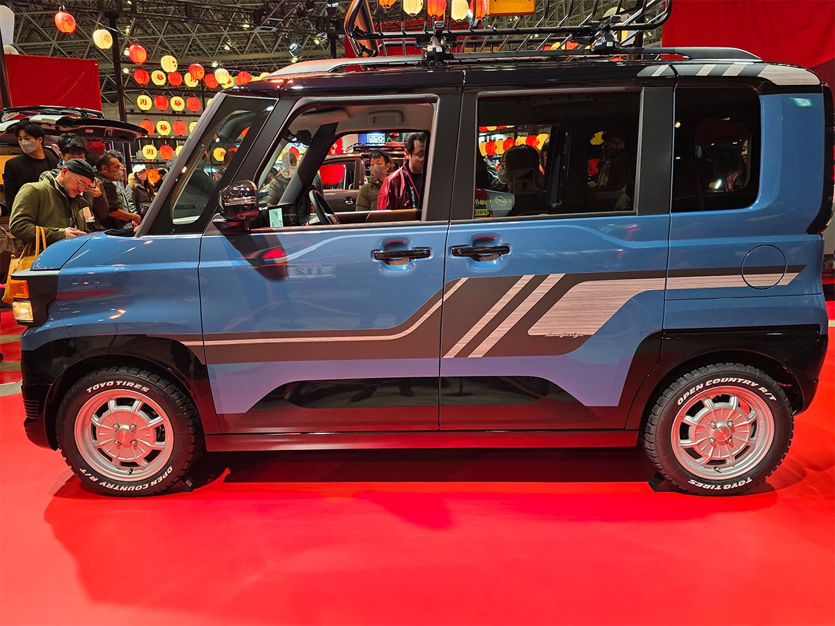 デリカミニ×ダリウィズダムドは、三菱らしさを残しつつ、レトロな印象とすることで、かわいくもワイルドなスタイリングが目を引く印象的なクルマに仕上がっている。