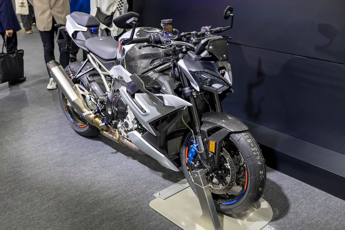 BMWの2輪(モトラッド)部門から出展されたのは、レースマシンのベース車両であるM 1000 RRのロードモデル「M 1000 R」だ。わずか194kgの車重ながら、最高出力は210psを発生する。最高速度は280km/hにも達するスーパーバイクだ。