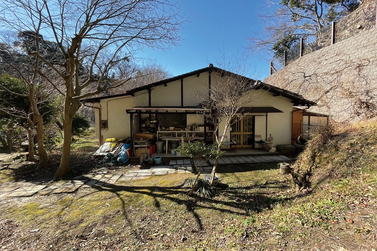文化人が好んで住んできた歴史ある鎌倉の町には、他の町とは異なる独特の空気が漂っている。桝永さんの両親はイラストレーターから陶芸家に転身し、かつて自分たちが建てた世田谷の家で創作活動を始めたものの、環境がしっくり来なかった。そこで創作しながら暮す町として選んだのが鎌倉だ。この家を手に入れたのは15年前のこと。駅から随分と離れた、鎌倉特有の丘と丘に挟まれた谷あいに建つ家で、敷地の裏手には木々が生い茂る山が迫っている。数年前に敷地に至る山道が崩れたことを契機に、擁壁を整えて家を直し桝永さんの夫婦も一緒に暮すことになった。