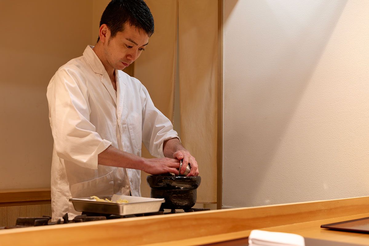 店主の冨田雄亮氏は、表参道の「太月」や麻布十番「御料理 辻」で研鑽を積んだ、名店出身の料理人。日本料理の基本を崩さず、食材の組み合わせで行き過ぎない程度に自身の色を添えるのが信条だ。