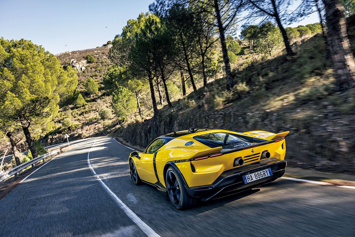 いま、押し出していく、と書いたけれど、その時に、前2つのモーターがどれだけ働いて、引っ張ってくれているのかは分からない。また、後ろ1つのモーターがどれだけ加勢しているのかも分かりようがなく、ただ言えるのは、エンジンのVバンクの外側にある10%径が大型化された2つのタービンが、いつ働きはじめたのか、そのラグがまるで感じられないくらいリニアに加速するということだけだ。電気モーターとエンジンの連携の精度は、SF90から格段に進化したと言っていいだろう。