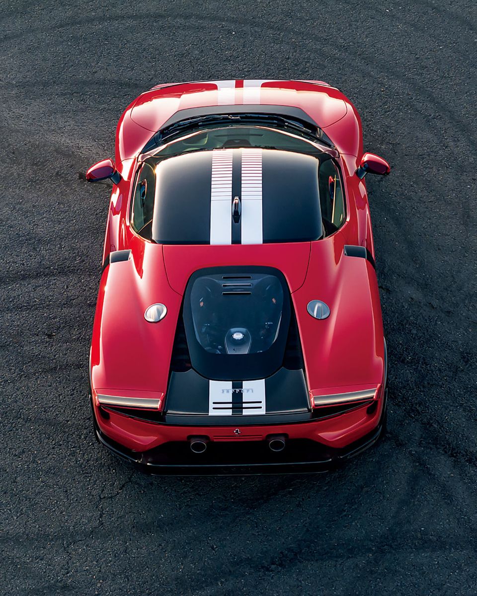 今回、SF90XXストラダーレの開発で得た知見を元に新たにチューニングし直されたという足回りは、スプリングに高強度鋼材を使い重量を35%軽減しながら、磁性体を使ったアダプティブ・ダンパーの減衰を、サーキットと公道の双方についてバーチャルとリアルで解析して最適化したという。その結果、コーナリング時のロール率を10%低減させ、限界付近での挙動を大幅に改善することに成功したというのだが、それがこの驚異的な剛性感と硬質感を持ちながらも、いささかも快適性を損なわない乗り味に繋がっているのか。