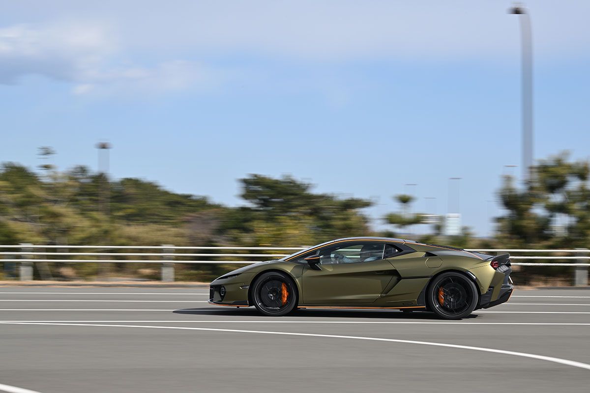 スーパーカー世代という助手席のEPC会員は、乗り込む前から目を輝かせていた。カウンタック時代からの低く伸びたウェッジシェイプが独特の存在感を放つテメラリオは、電動化時代のスーパースポーツの次章を告げる存在である。