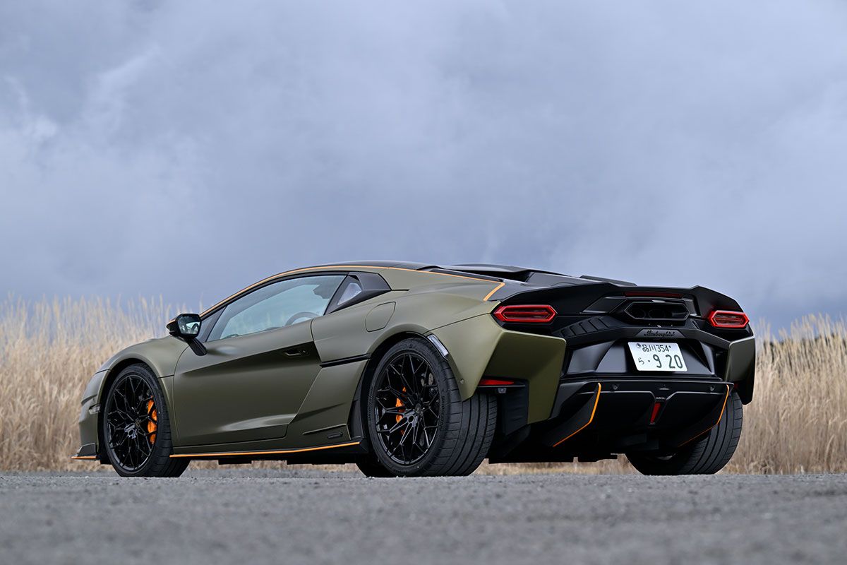 超高回転型V8ツインターボに3基のモーターを組み合わせ、フロント2基が電動走行を担い、内燃機の始動と同時に後輪が路面を蹴り上げる。1万rpmを許すという怒濤の加速は紛れもなくピュアスーパースポーツ。
