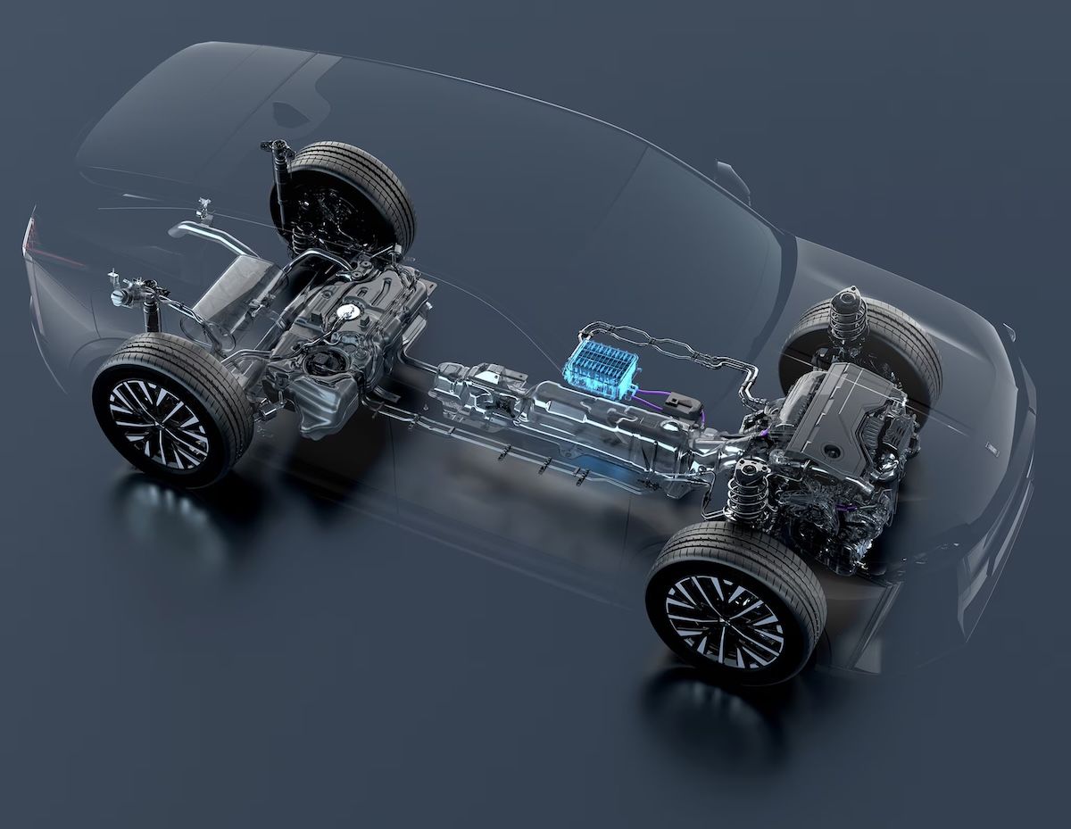 パワートレインはまず純電気仕様の「E-テンス」は、前輪駆動の「FWD(230馬力)」、大容量バッテリーを搭載した「FWDロング・レンジ(245馬力)」、4輪駆動の「AWDロング・レンジ(350馬力)という3本立てだ。この中で「FWDロング・レンジ」はWLTPモードで最大740kmという航続距離をマークする。搭載するバッテリーの容量97.2kWh。急速充電は160kWに対応で、20→80%の充電は27分で完了。10分の充電で約190kmの航続距離を回復できるのも実用的だ。
