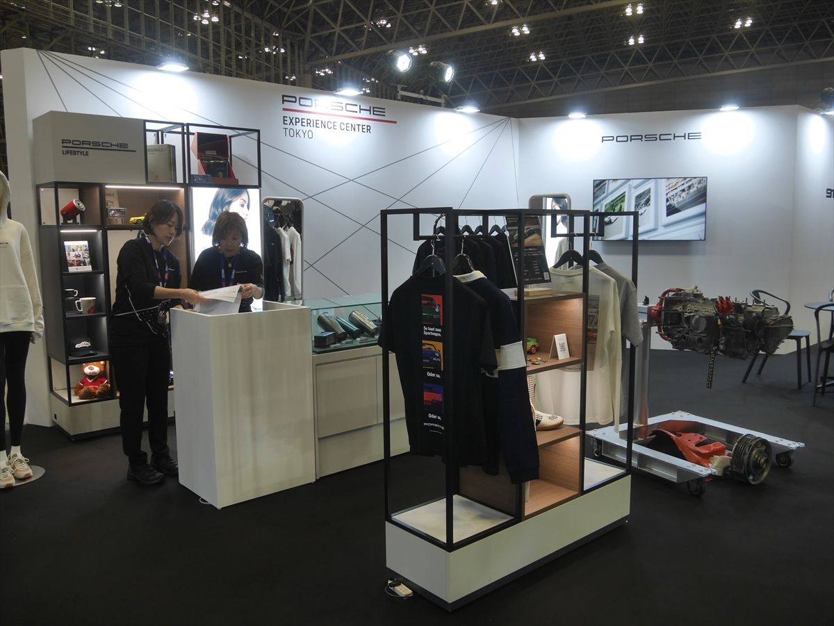 また、新作の販売を開始したポルシェライフスタイルコレクション、レトロコレクションも展示。Tシャツやフーディー、ラグビーシャツやキャップなどは、いずれも往年の広告やポスターに着想を得たアートワークで飾られる。