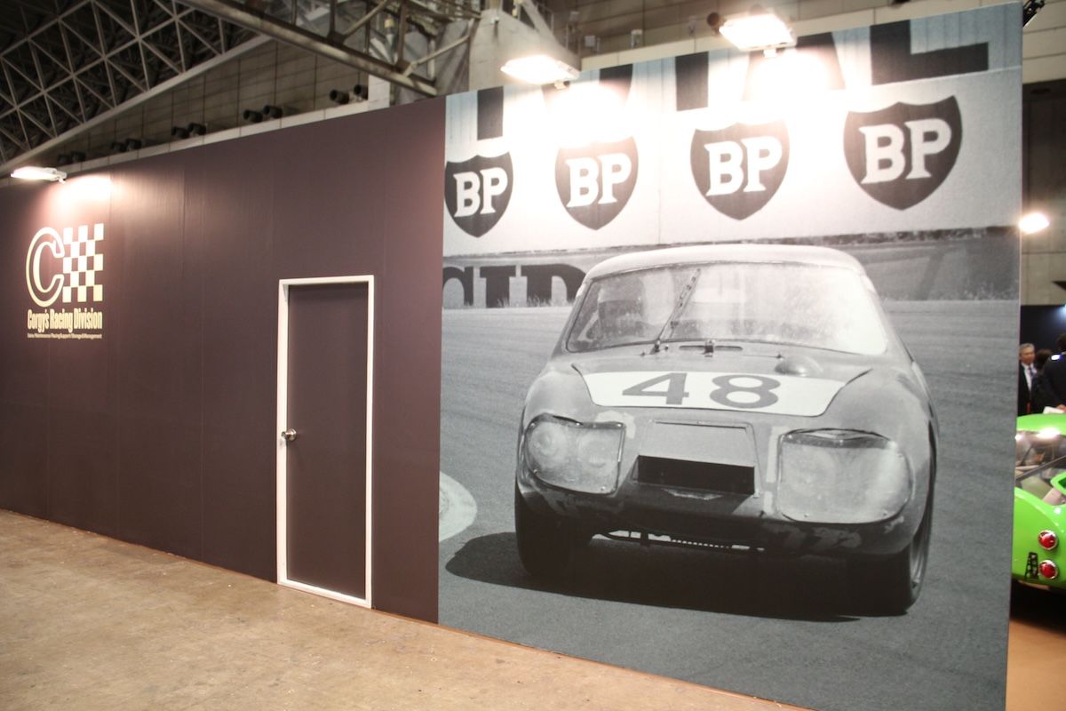 ブースに設置されたパーテーションに1965年のル・マン24時間レースにおいて不運なワークス・スプライトとなったゼッケン#48号車が快走しているときの写真が大きく掲示されていたので、コーギーズの鈴木代表に解説してもらった。昼間はヘッドライトの部分に段ボールのようなモノを貼ってカバーし、夜になると剥がして走行していたそうで、貼ったり剥がしたりしているうちに塗装がペリッとテープ側に付いてしまい、ヘッドライトの周囲からオリジナル色のピスタチオ・グリーンが見えるようになっているという、なんとも微笑ましいエピソードも聞くことができた。