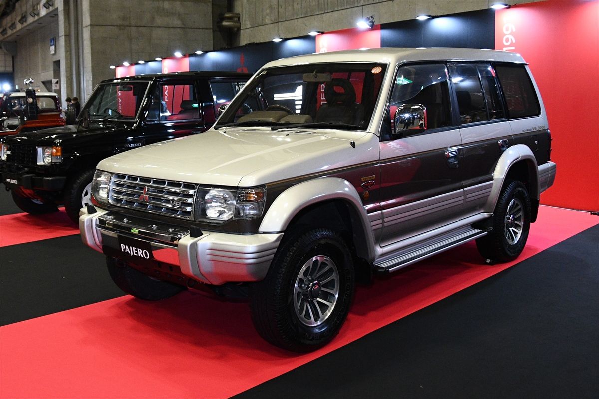 すでに大人気となっていたパジェロは1991年にフルモデルチェンジ。2代目はショートホイールベースがメタルトップとソフトトップ(Jトップ)の2種、ロングホイールベースがミッドルーフと呼ばれる標準ルーフとキックアップルーフと呼ばれるリア側がハイルーフになる2種。さらにオーバーフェンダー付きと無し、ワゴンとバン、直4ディーゼルと直4ガソリン、V6ガソリンと多彩なバリエーションを誇った。採用された4WDシステムは、ビスカスカップリング内蔵センターデフ付きフルタイム4WDと、直結4WDおよびRWDに切り替えられるパートタイムと4WDを選べるスーパーセレクト4WDという2つの機構を用意していた。展示車は3.0リッター・ガソリンエンジンを搭載。