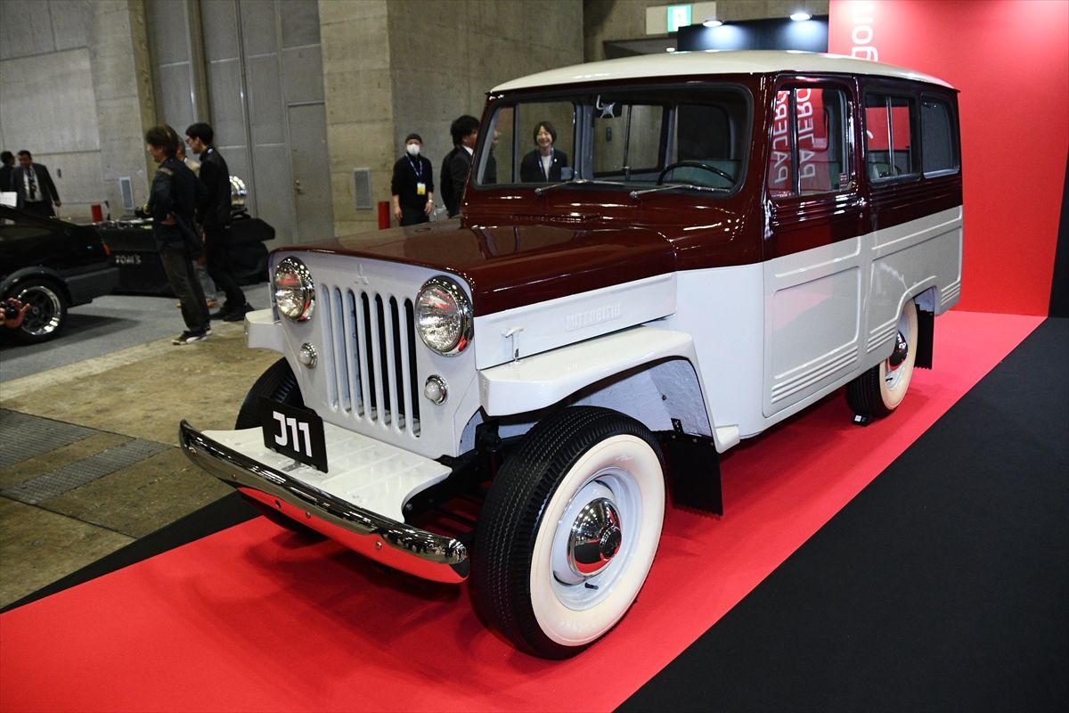 三菱ジープは、中日本重工業(のちの三菱重工業)が米国ウィリス・オーバーランド社との提携によりノックダウン生産した本格4WD車。三菱自動車工業は1970年に設立された会社で、それ以前は三菱重工業の自動車部門が三菱ブランドのクルマを製造していた。J11デリバリ・ワゴンは2.2リッター・ガソリンエンジンを搭載し、後輪駆動、および前後直結式の四輪駆動を選択できるパートタイム式4WDを採用。展示車は左ハンドル、2ドアの5人乗りモデルだ。