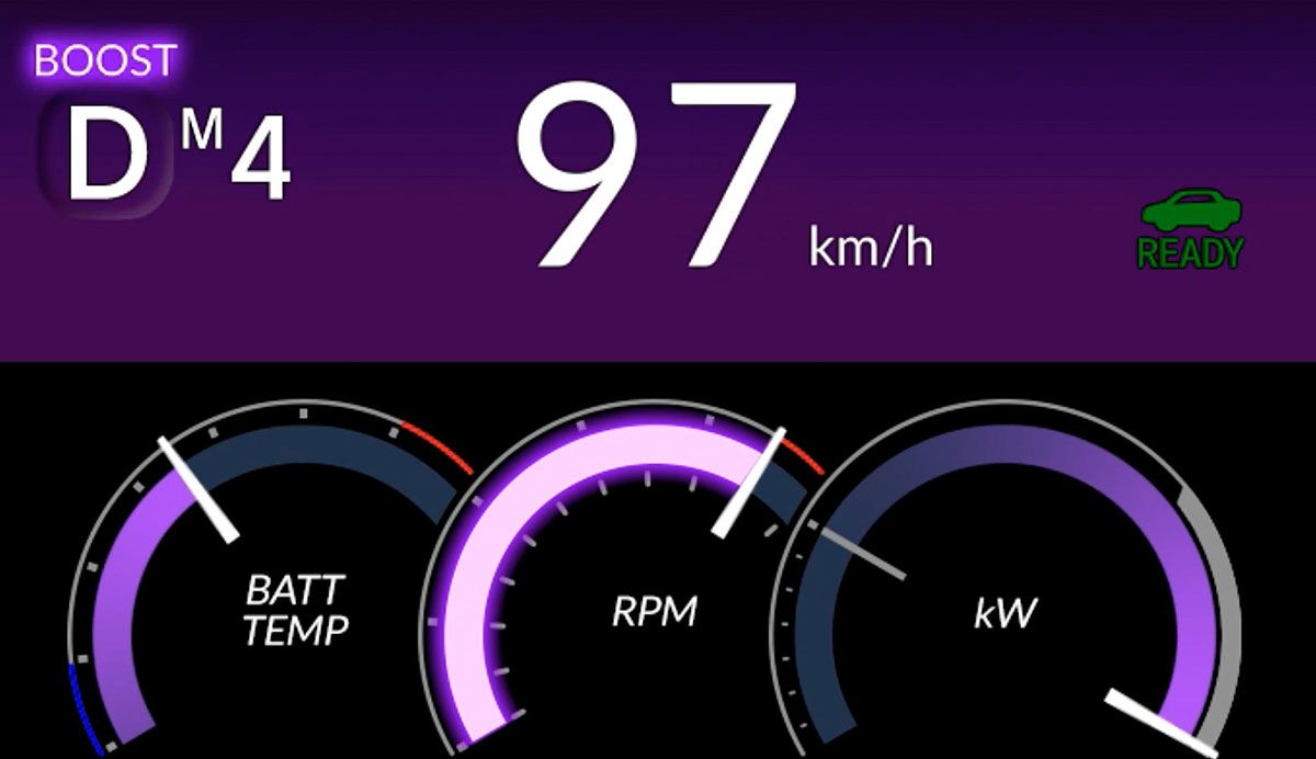 室内は専用のスポーツシートを装備。サイドサポートの形状はシティ・ターボIIのそれを彷彿させる。ブーストモード選択時にはメーター用のディスプレイに擬似タコメーターが表示され、盤面と助手席前のイルミネーションが通常時の青から紫へ色が変化する。