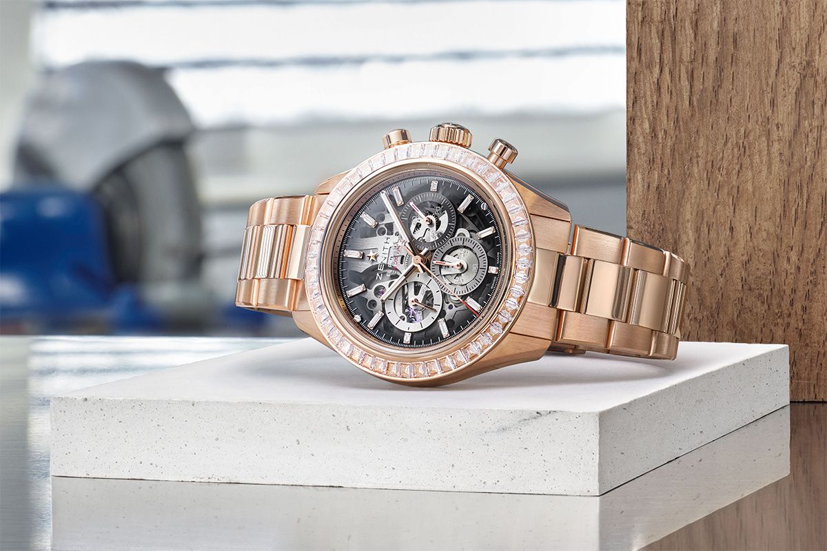 クロノグラフの傑作ムーブメント“エル・プリメロ”の動きを見ることができる「クロノマスター スポーツ スケルトン」は、機械式時計好きの心をくすぐる1本だ。