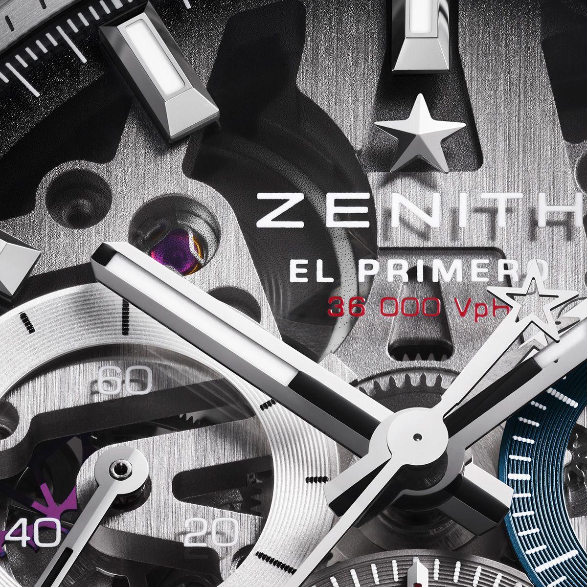 文字盤はサファイアクリスタル製で、外周部が黒、中央部が透明というグラデーションになっている。また、ブラックベゼルを装備するモデルに採用されているカウンターの3色(グレー・アンスラサイト・ブルー)は、1969年の初代エル・プリメロへのオマージュだ。